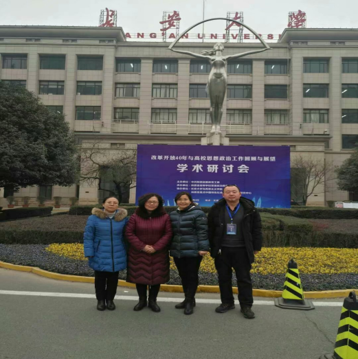 2019年1月4日,由中共陕西省委教育工委主办、陕西省高等学校思想政治教育研究会承办、长安大学马克思主义学院协办的“改革开放40年与高校思想政治工作回顾与展望”学术研讨会暨2018年年会在长安大学隆重举行,来自省内外近70所高校的主管院领导、宣传部、思政部负责人、特邀专家学者和论文作者共计240余人参加会议。我院党委副书记、副院长刘永亮、党委宣传部部长王金辉、思政部部长高凤香和论文作者宣传部钟晓书、思政部张英岗陆颖张娟老师受邀参会。陕西省思政研究会会长、长安大学党委书记杜向民教授致开幕词。