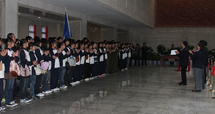 仪式结束后,思政老师们现场组织同学进行了诗词朗诵和革命歌曲演唱等爱国主义主题教育活动,并参观了纪念馆。