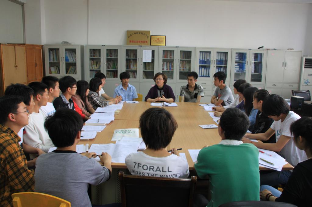根据陕工院院字【2012】52号《关于开展2011—2012学年第二期期中教学检查的通知》精神,思政部部内自查工作按学院的安排在10——12周进行。5月4日下午7、8节,思政部组织部内每位专兼职教师授课班级学生代表,分成4个小组举行学生座谈会,分别由思政部部长高凤香、办公室主任刘权政及魏东斌、李颂辉两位教研室主任担任组长,对开学以来思政课的教学情况进行全面检查。