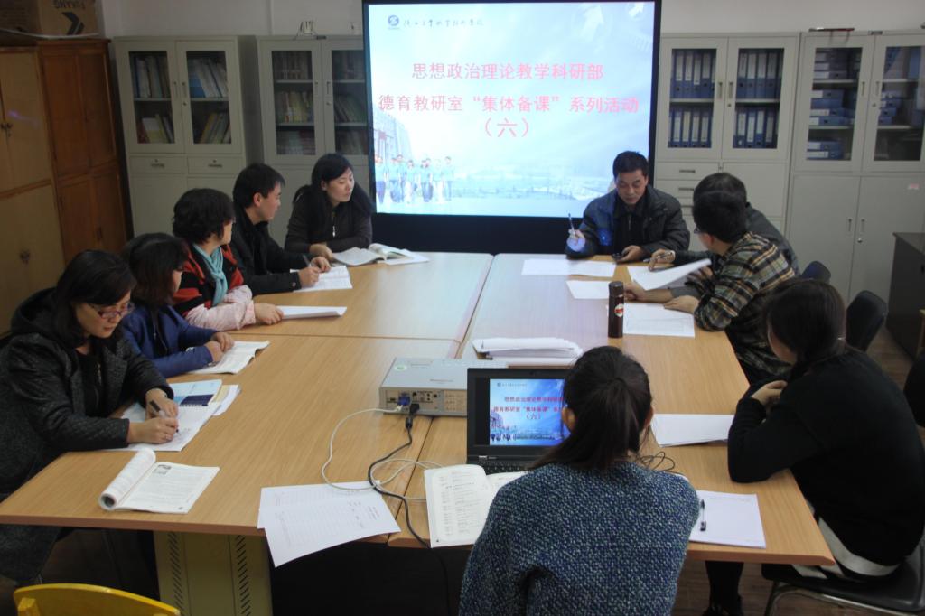 11月20日下午4:00-5:30,思想政治理论教学科研部·德育教研室乘着我院期中教学检查有序推进的东风,本着迎检与工作两不误的原则,在崇文楼A座12-12思政部办公室,将本学期举办的“集体备课”系列教研活动推进到了第六专题。德育教研室主任李颂辉副教授主持此次“集体备课”活动,德育教研室全体教师参加,马中化教研室部分老师现场观摩。