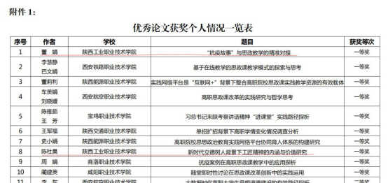 此次主题征文活动,是深入学习贯彻习近平总书记来陕考察重要讲话精神,进一步传承延安精神、西迁精神、梦桃精神及抗疫精神,着力推进陕西高职院校理论研究和思政课教学质量再上新台阶的重要举措。本次征文活动共有27个单位累计选送99篇论文参评,最终评选出优秀论文56篇,优秀组织奖3个。