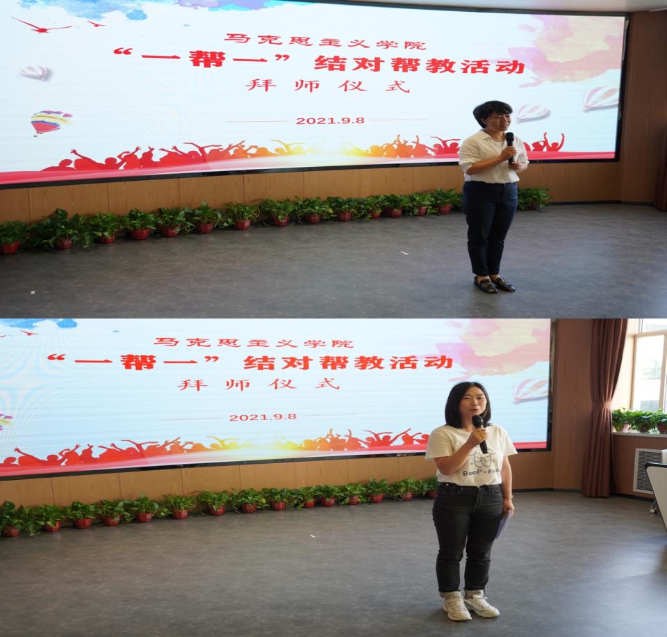 ——敬师篇。举行拜师礼仪式,近两年新进的26位青年教师依次向各自的指导教师献花并行鞠躬礼,指导教师向青年教师回赠书籍并进行合影留念后,学校梅创社副院长,宣传部部长、马院院长王金辉和马院副院长王辉分别给各位指导教师颁发了帮教活动聘书。