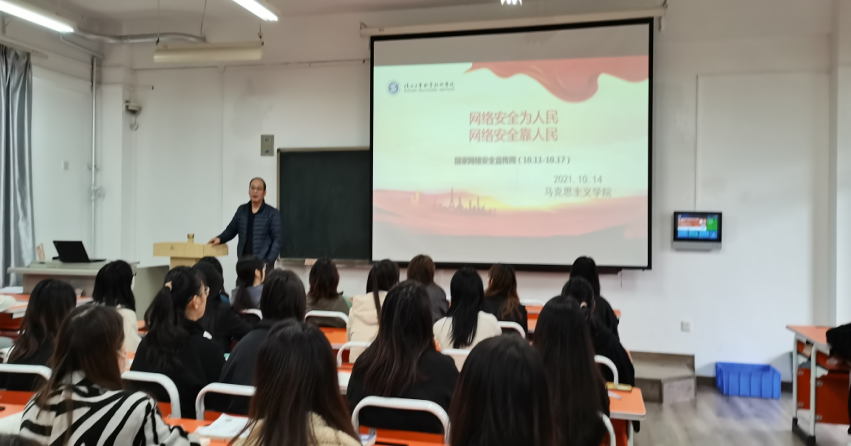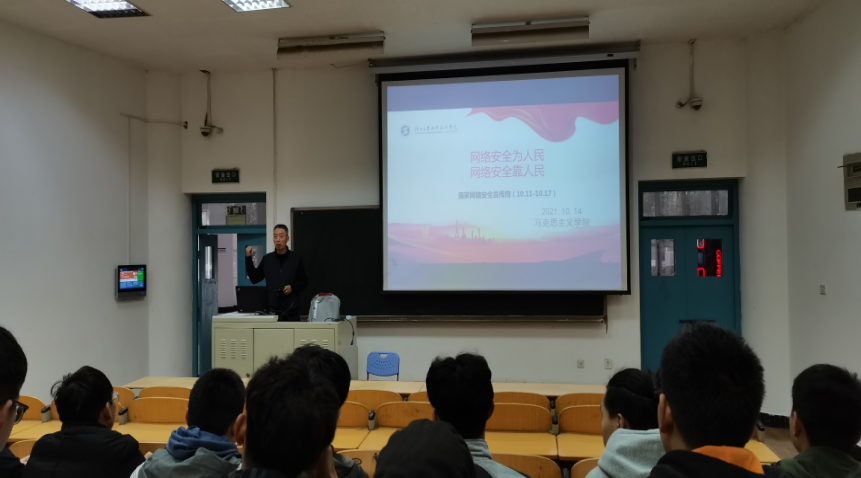 在国家第八届网络安全宣传周活动开展之际,为加强我校广大学生网络安全教育,10月14日,党委宣传部、马克思主义学院联合开展了网络安全知识宣讲进课堂活动,马院思政课教师积极利用思政课渠道为广大学子进行了网络安全意识教育。