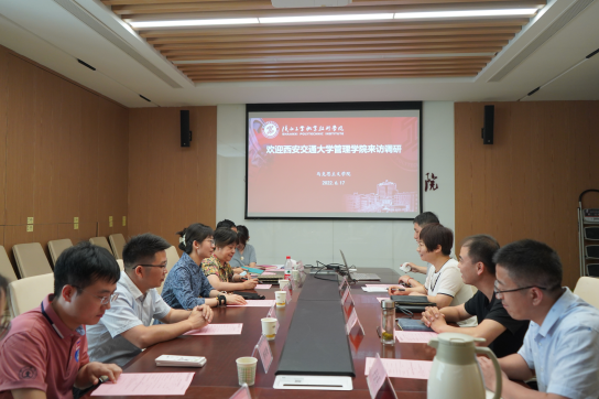 王艳副院长首先对西安交通大学管理学院一行表示欢迎。随后,双方就虚拟仿真教学设计和资源开发、思政课程与课程思政的耦合育人以及科研课题申报等关注问题进行了深入交流与探讨。
