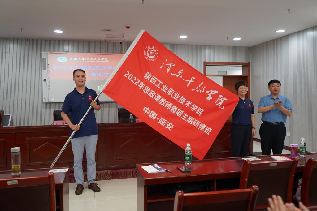 最后,拓宏伟教授宣布陕西工业职业技术学院马克思主义学院2022年思政课教师暑期主题研修班开班,并为培训班授旗。