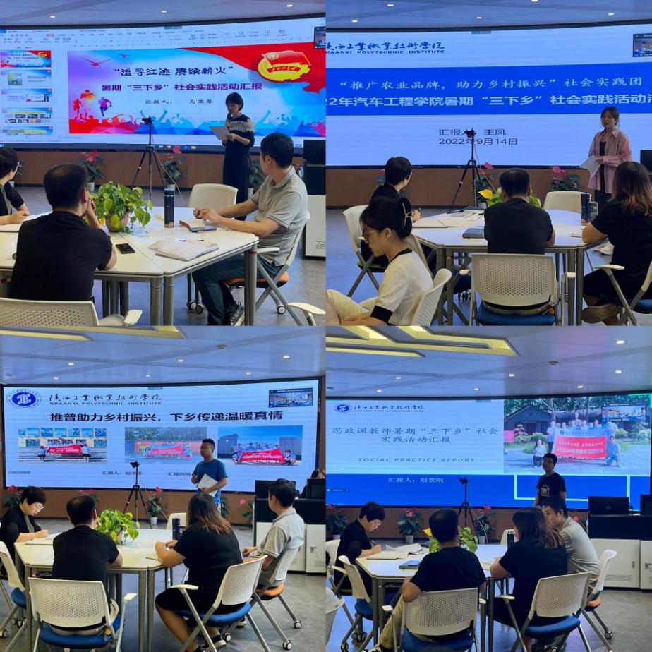 随后,参加“三走进”社会实践活动的12位教师代表分别从活动概况、走访过程、活动感悟和未来展望等方面作了交流发言。他们表示:短短几天的暑期“三下乡”社会实践活动,让同学们明白了作为新时期大学生,不仅要好好学习掌握现代化知识,而且还要多参加社会实践,在实践中更好地运用和掌握知识,了解社会发展,锻炼自己,发展自己,使自己将来能更好地投身于社会服务于社会。同时,作为一名思政课教师,必须积极走进社会,全方位充分汲取“大思政课”营养,利用思政课堂切实讲好中国故事,引导广大学子把青春奋斗融入党和人民的事业中,用自己的力量,为祖国振兴添砖加瓦。