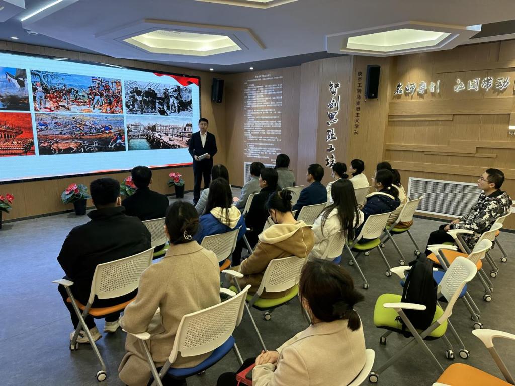 在我院智创思政工坊,马克思主义学院总支委员陈杜昊以《新征程的“取经路”——中国式现代化》为题,给党员们进行了理论宣讲。陈杜昊老师首先给大家阐释了什么是现代化、什么是中国式现代化。接着他运用翔实的数据和生动的案例,帮助大家认清为什么说中国式现代化打破魔咒般的“现代化=西方化”的迷思,并深刻解读了我们为什么要走“中国式现代化”。最后,陈老师结合党的二十大的战略部署和各自的工作实际,和大家交流了未来我们应该如何继续推进中国式现代化,我们能为中国式现代化做些什么。宣讲结束后,大家纷纷表示本次党课既内容充实、思想深刻,又贴近实际、通俗易懂,让自己对党的二十大精神有了更加深入的了解和体会。