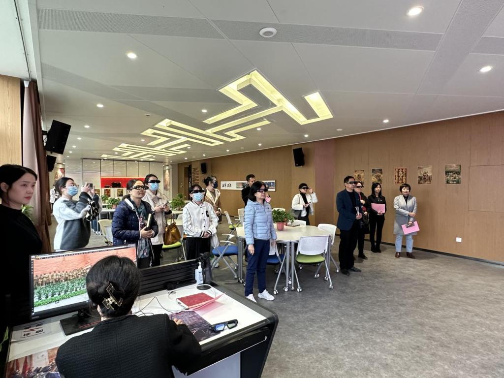 活动中,杨雯静书记一行还参观了我院学马研习·践创空间,并和思政课教师代表就梦桃精神的内涵和弘扬进行了深入的交流。双方就借助赵梦桃纪念馆开展“大思政课”建设等事宜进行了磋商。