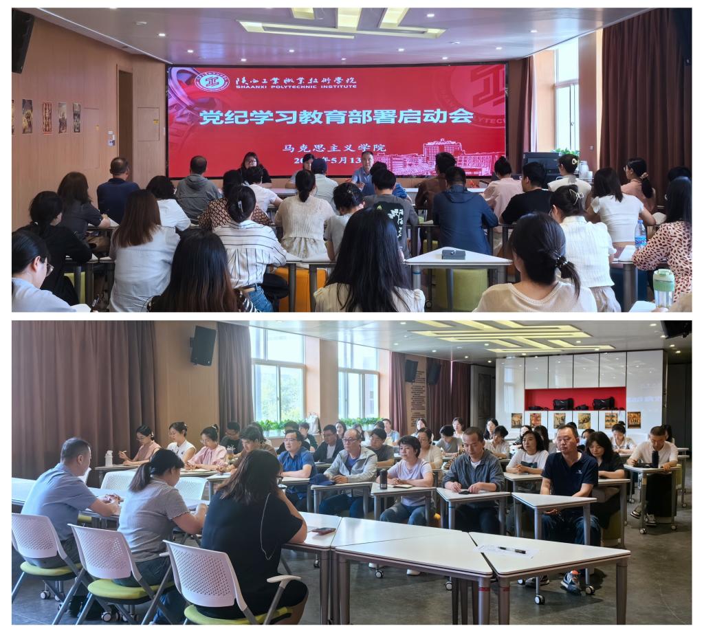为深入学习贯彻习近平总书记关于党纪学习教育的重要讲话和重要指示精神,根据学校党委党纪学习教育实施方案要求,5月13日下午,马克思主义学院党总支在VR实训中心组织召开了党纪学习教育启动部署会。会议由总支书记舒蕾主持,全体教师参会。